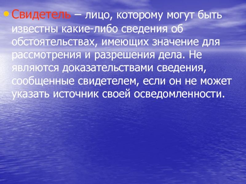 Слайд 2Свидетель – лицо, которому могут быть известны какие-либо сведения об