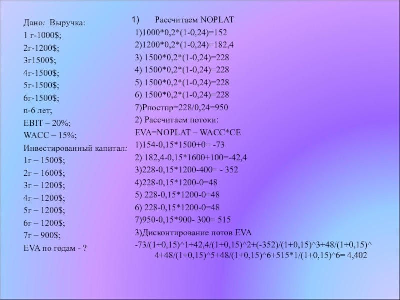 3)Дисконтирование потов EVA