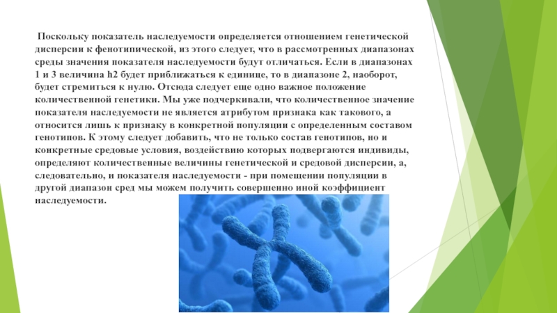 Слайд 13 Кроме того, необходимо понимать, что показатель наследуемости есть характеристика