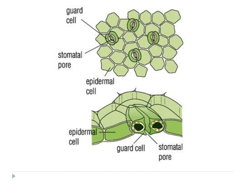 - устьичный аппарат – осуществляет газообмен и транспирацию;