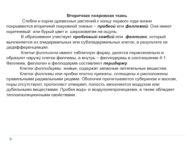 Слайд 29Вторичная покровная ткань