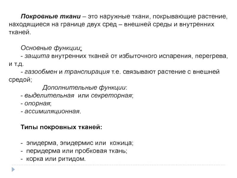 Слайд 3 Характеристика покровных тканей.
