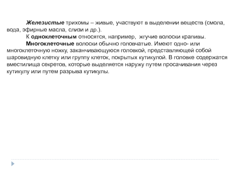 Слайд 25 Железистые трихомы – живые, участвуют в выделении