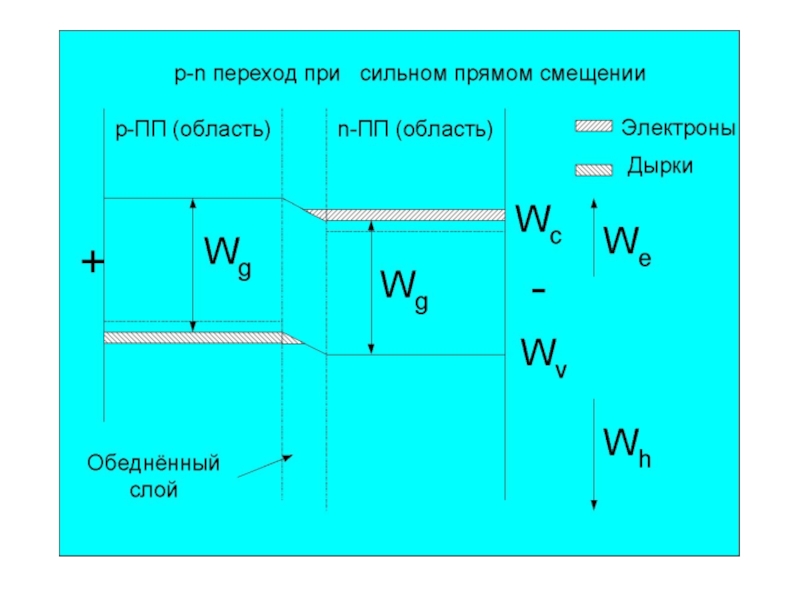 Светодиод – преобразование электрического сигнала в световой, прямосмещённый pn-переход (+p, -n)