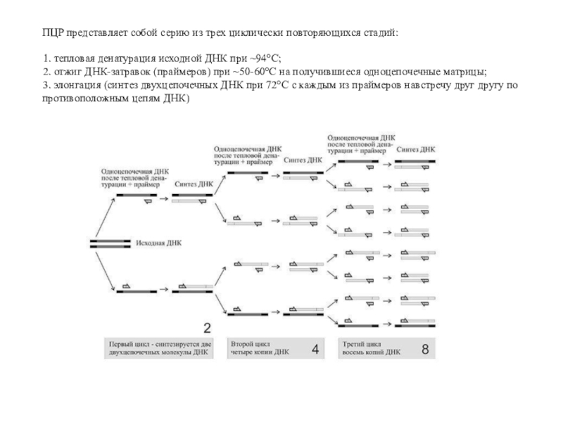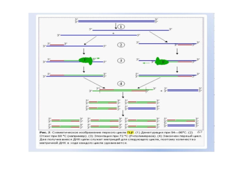 1. образовании комплементарных комплексов между матрицей и праймерами (18-30 п.н.).