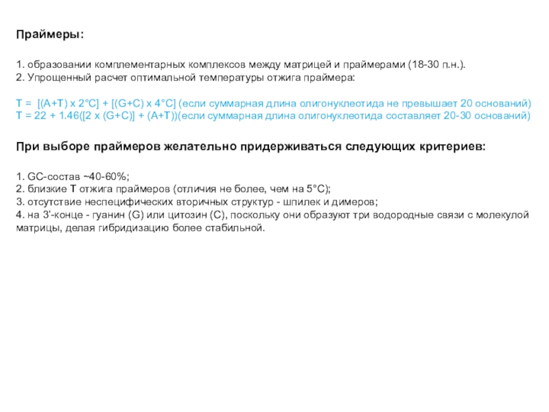 + [(G+C) x 4°C] (если суммарная длина олигонуклеотида не превышает 20 оснований)
