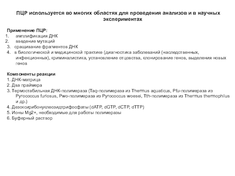 Слайд 5ПЦР используется во многих областях для проведения анализов и в