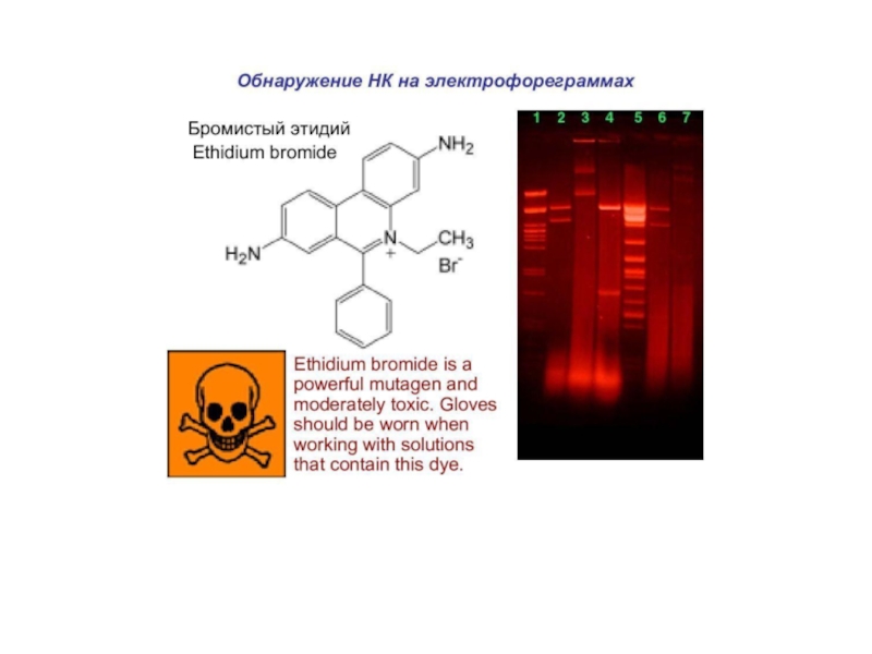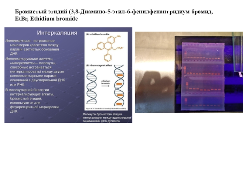 Слайд 29Бромистый этидий (3,8-Диамино-5-этил-6-фенилфенантридиум бромид, EtBr, Ethidium bromide