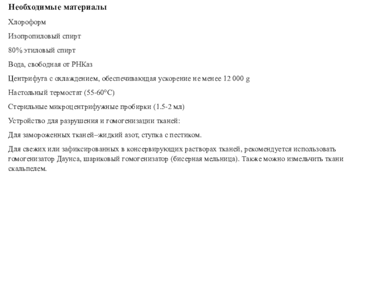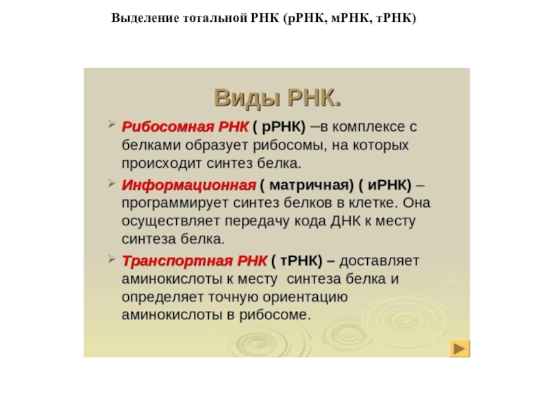 Слайд 11Выделение тотальной РНК (рРНК, мРНК, тРНК)