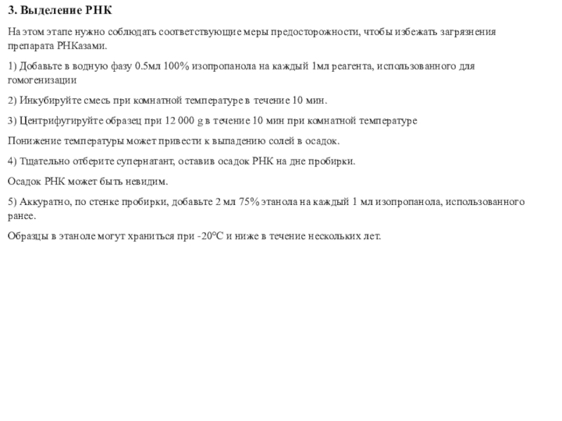 4) Тщательно отберите супернатант, оставив осадок РНК на дне пробирки.