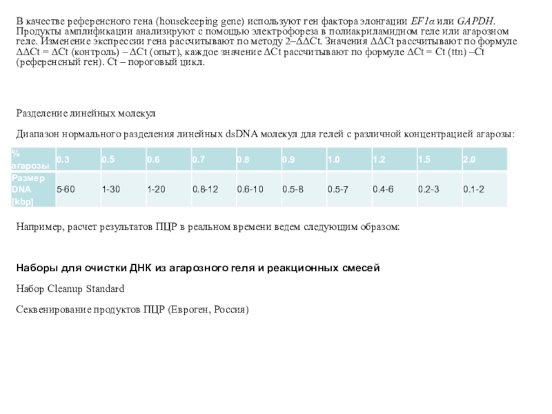 Слайд 28В качестве референсного гена (housekeeping gene) используют ген фактора элонгации