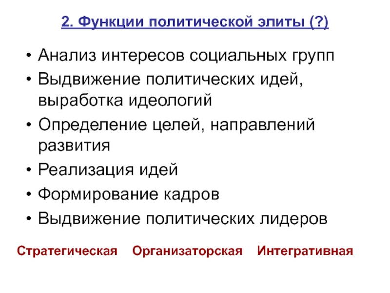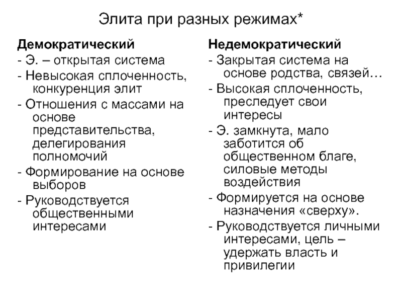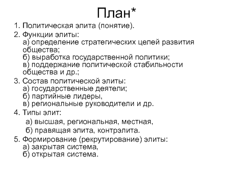 в) региональные руководители и др. 4. Типы элит: