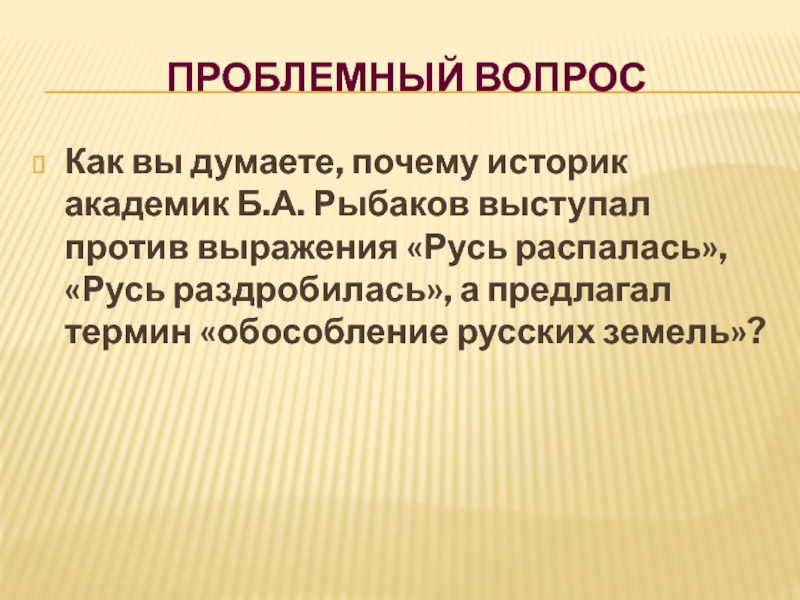 против выражения «Русь распалась», «Русь раздробилась», а предлагал термин «обособление