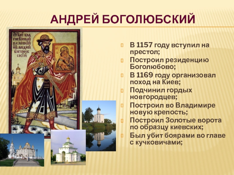 § 14-16, Написать эссе на тему «Деятельность Андрея Боголюбского
