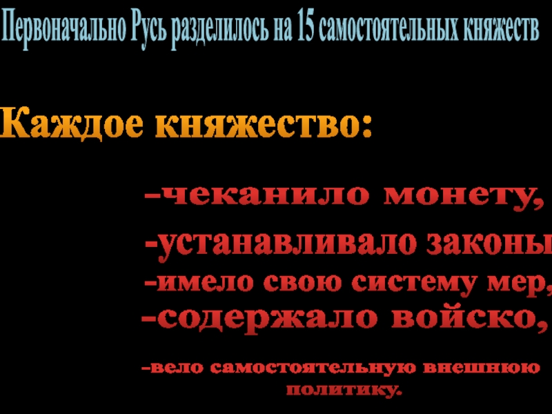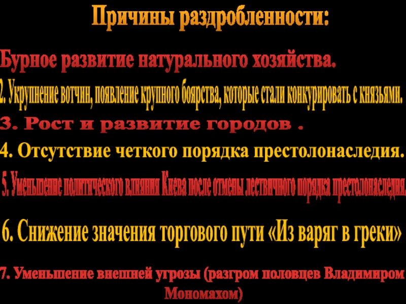 5. Уменьшение политического влияния Киева после отмены лествичного порядка престолонаследия.