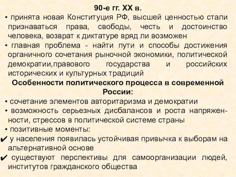 главная проблема - найти пути и способы достижения органичного сочетания рыночной экономики, политической демократии,правового государства и российских исторических и культурных традиций