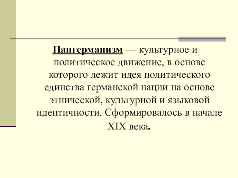 Пангерманизм — культурное и политическое движение, в основе которого лежит идея политического единства германской нации на основе