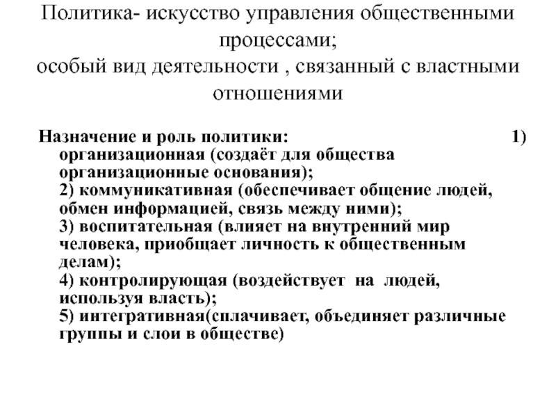 Назначение и роль политики: