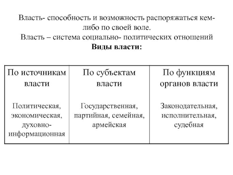Виды власти: