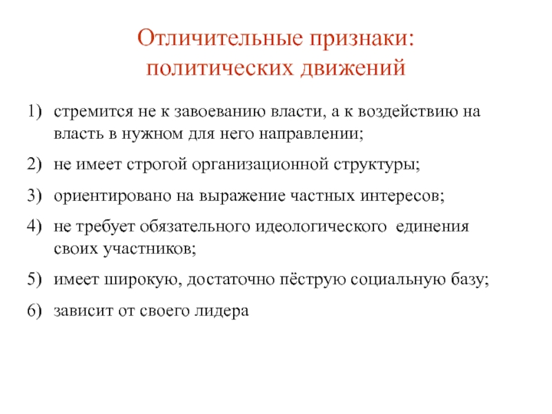 Слайд 22Признаки политической партии и движения