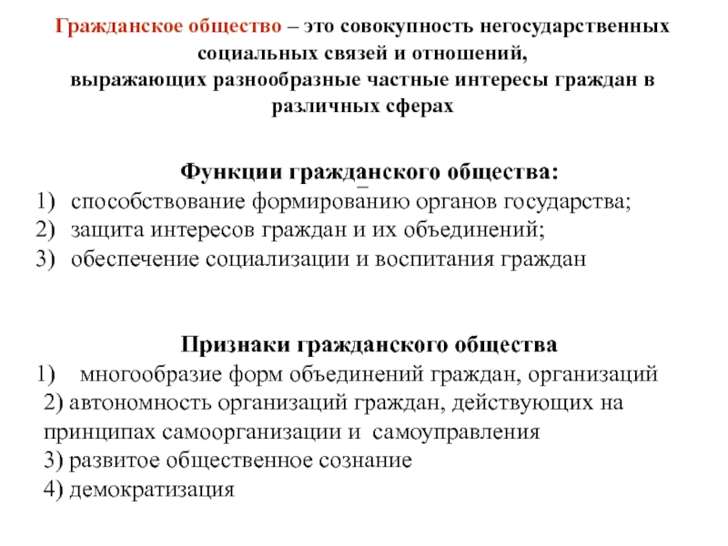 Признаки гражданского общества