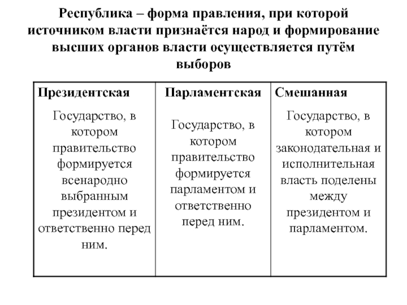 Слайд 10Республика – форма правления, при которой источником власти признаётся народ
