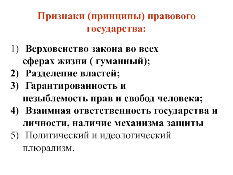 Признаки (принципы) правового государства:
