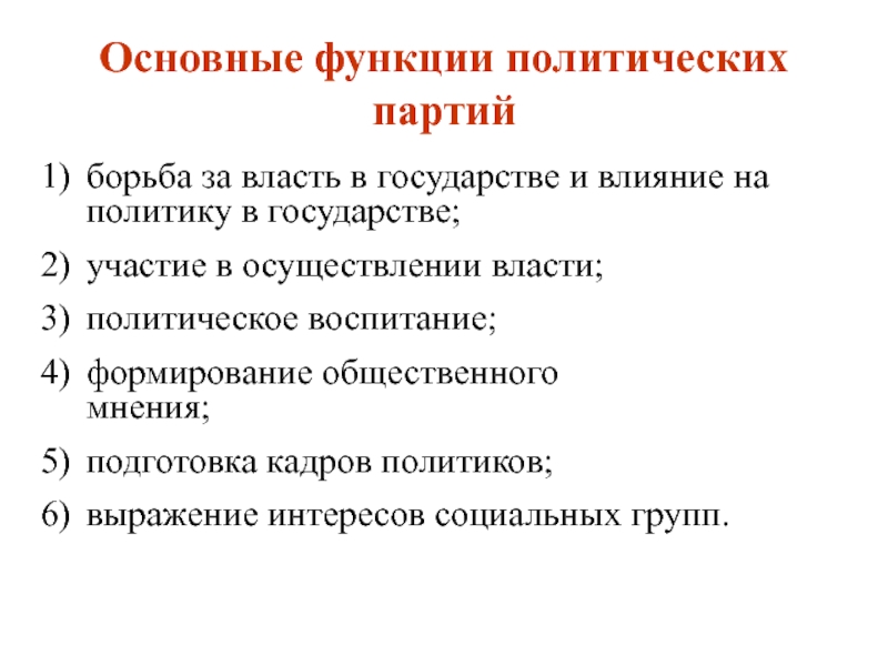 Слайд 23Основные функции политических партий