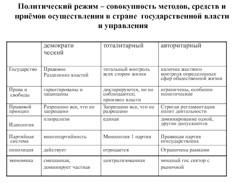 Слайд 11Политический режим – совокупность методов, средств и приёмов осуществления в