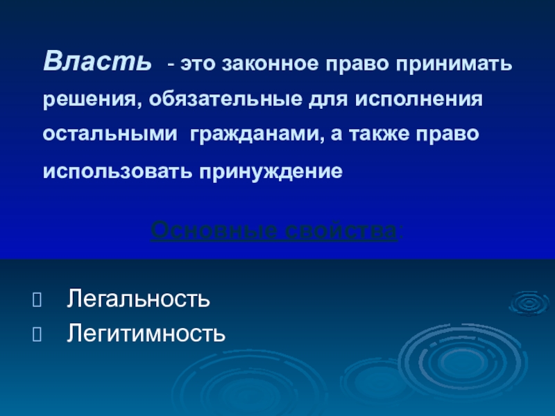 Слайд 6Власть - это законное право принимать