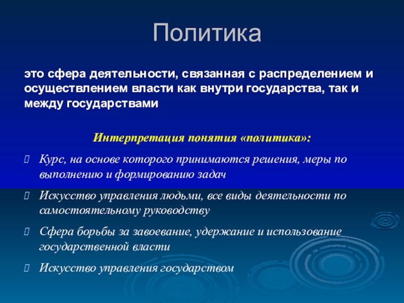 Интерпретация понятия «политика»: