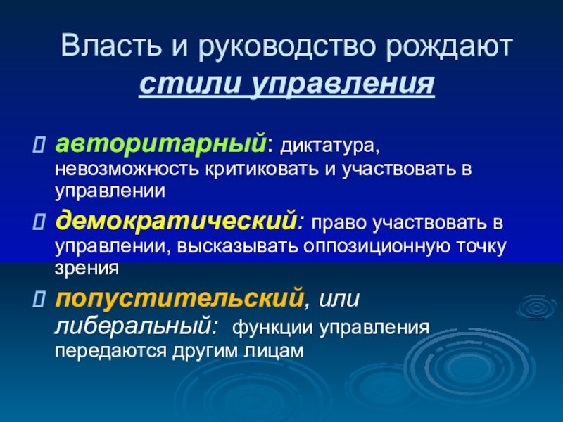 Слайд 9Власть и руководство рождают стили управления