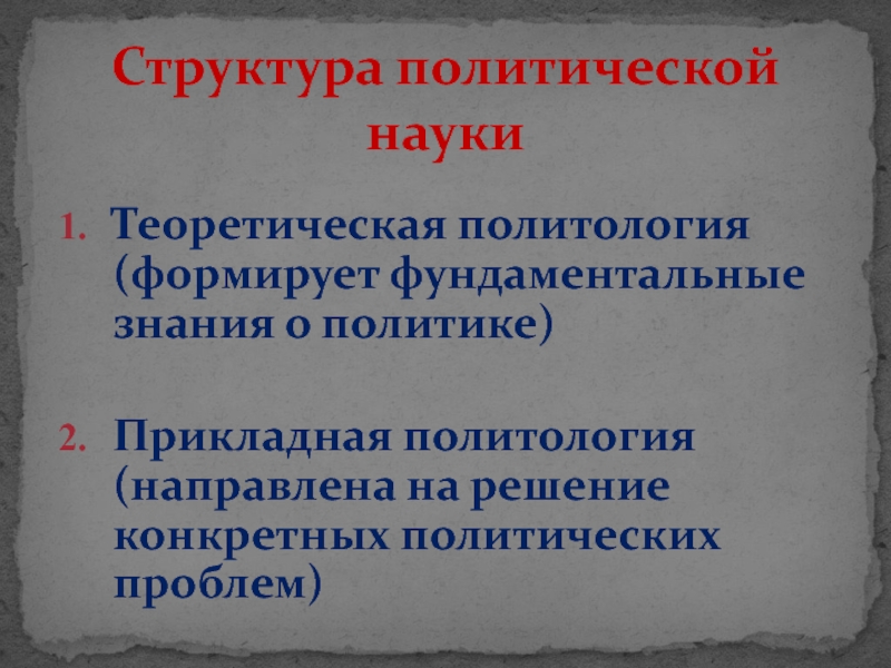 Теоретическая политология (формирует фундаментальные знания о политике)