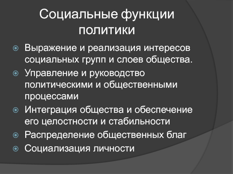 Слайд 37Социальные функции политики