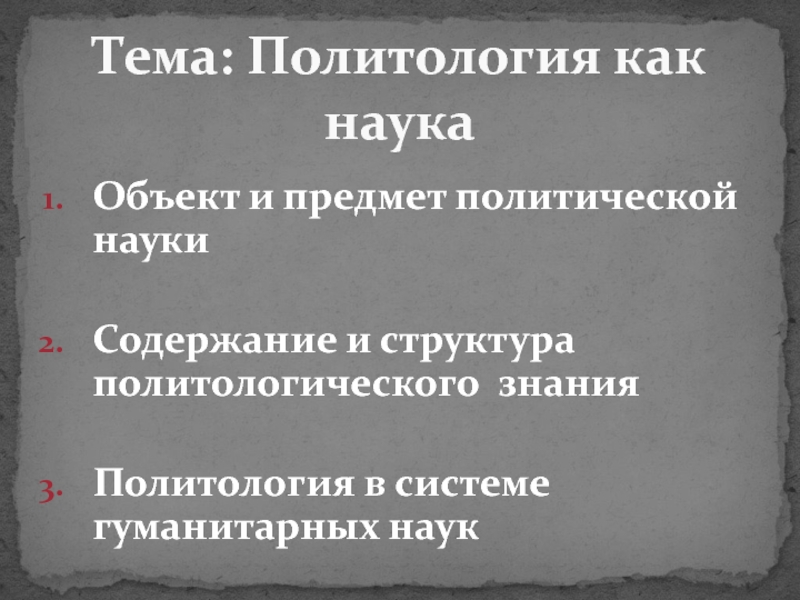 Тема: Политология как наука