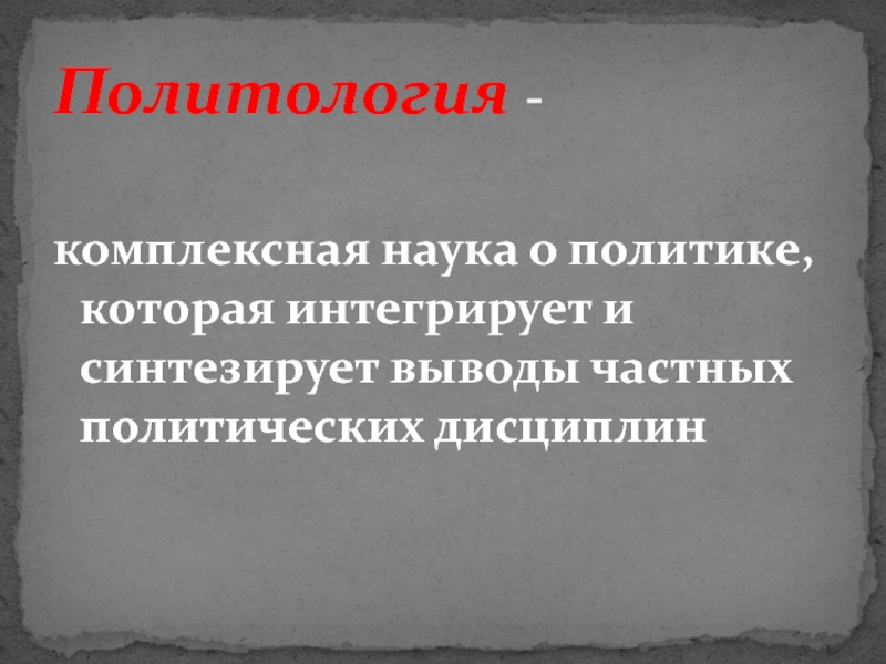 комплексная наука о политике, которая интегрирует и синтезирует выводы