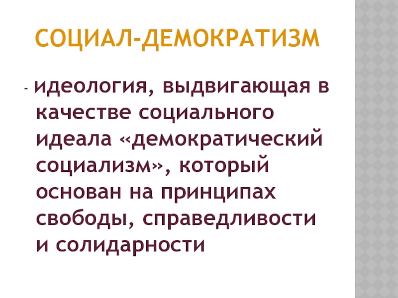 - идеология, выдвигающая в качестве социального идеала «демократический социализм», который