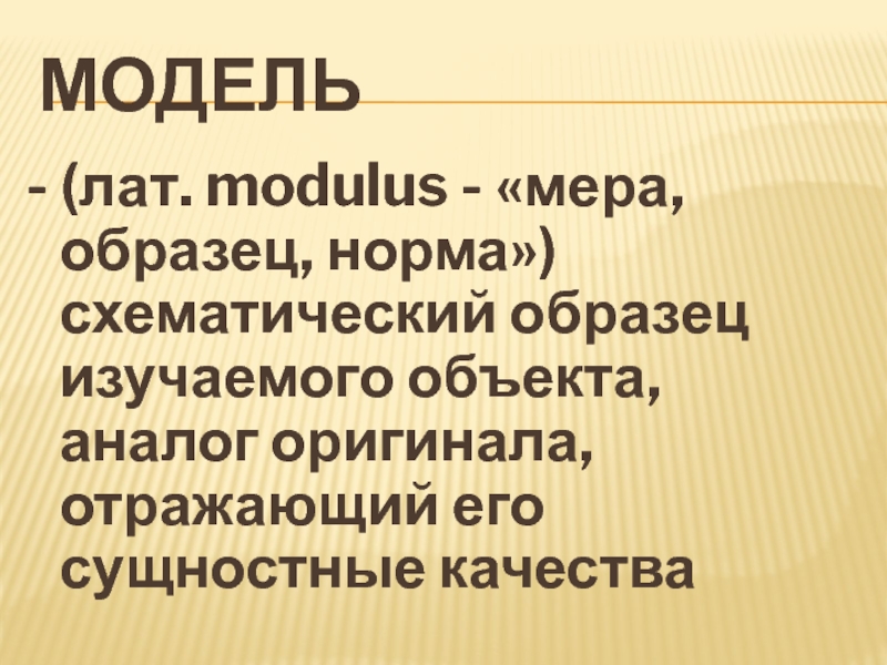 - (лат. modulus - «мера, образец, норма») схематический образец изучаемого
