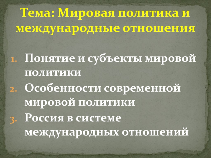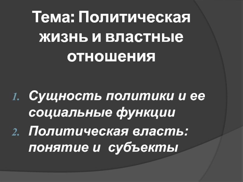 Тема: Политическая жизнь и властные отношения