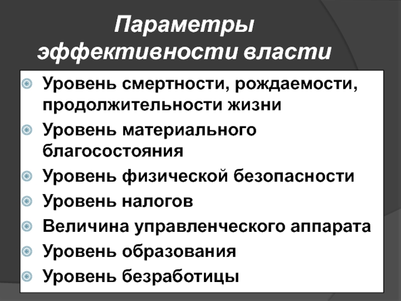 Слайд 45Параметры эффективности власти