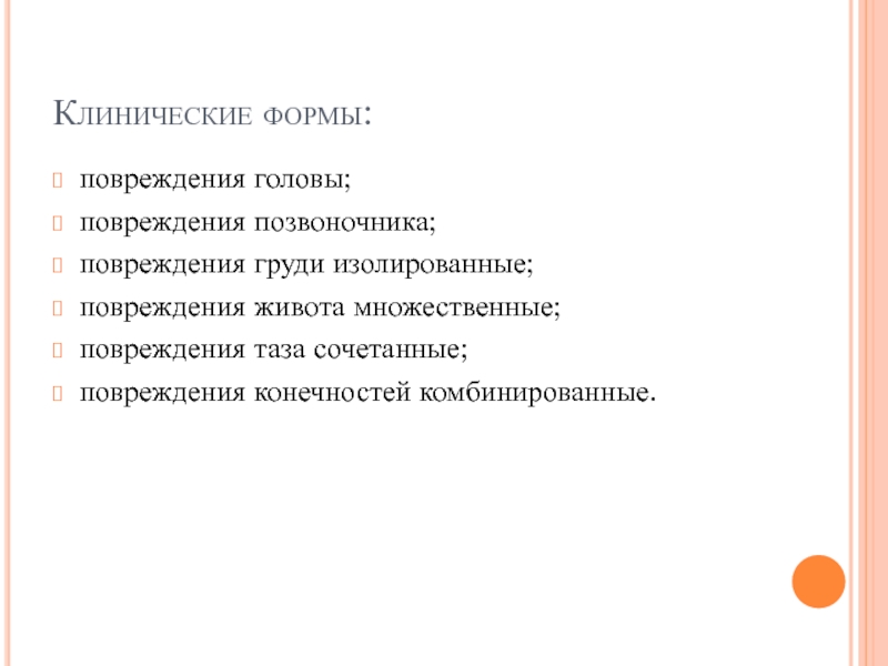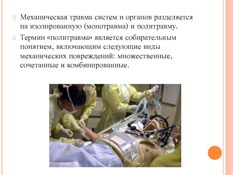 Термин «политравма» является собирательным понятием, включающим следующие виды механических повреждений: