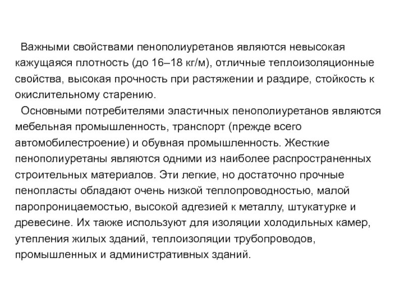 Слайд 23 Важными свойствами пенополиуретанов являются невысокая кажущаяся плотность (до 16–18 кг/м),