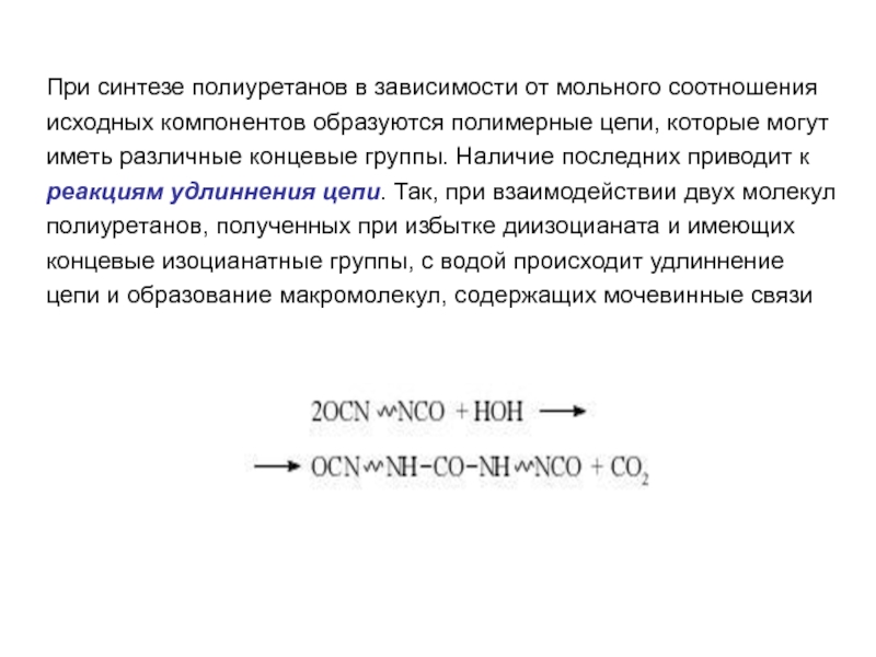 Слайд 12При синтезе полиуретанов в зависимости от мольного соотношения исходных компонентов