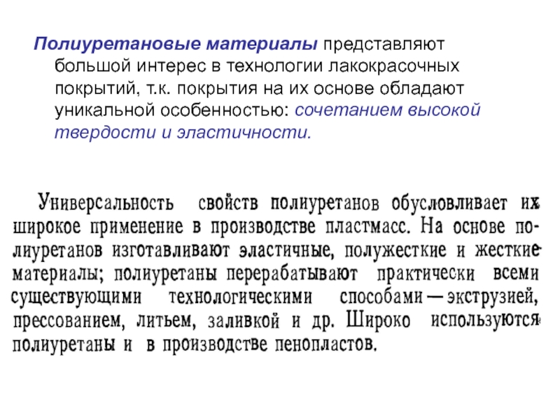 Слайд 8Полиуретановые материалы представляют большой интерес в технологии лакокрасочных покрытий, т.к.