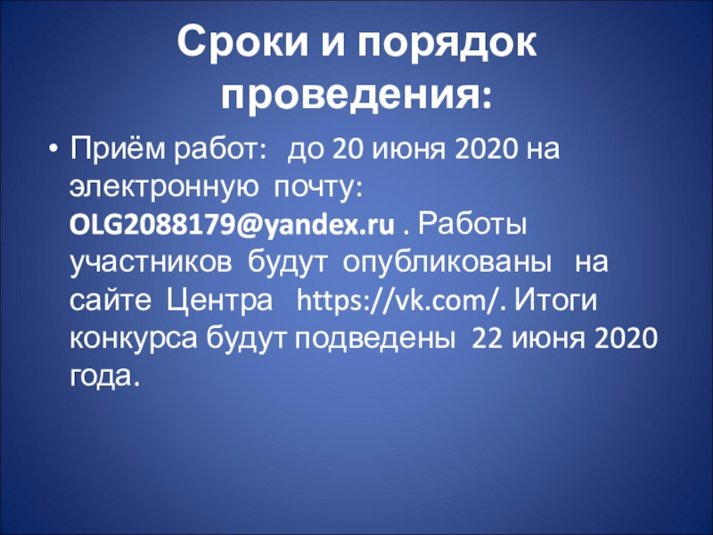 на сайте Центра https://vk.com/. Итоги конкурса будут подведены 22 июня 2020 года.