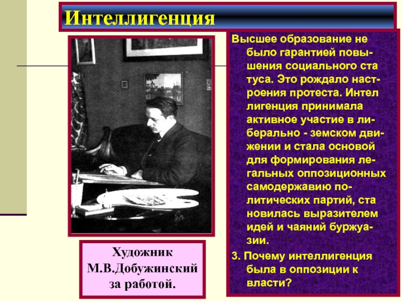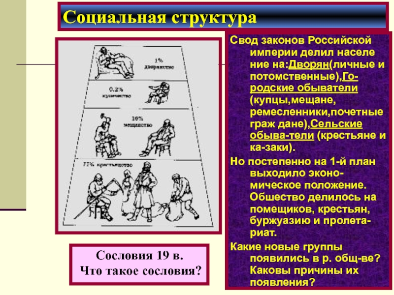 1-й план выходило эконо- мическое положение. Обшество делилось на помещиков, крестьян, буржуазию и пролета-риат. Какие новые группы появились в р. общ-ве? Каковы причины их появления?