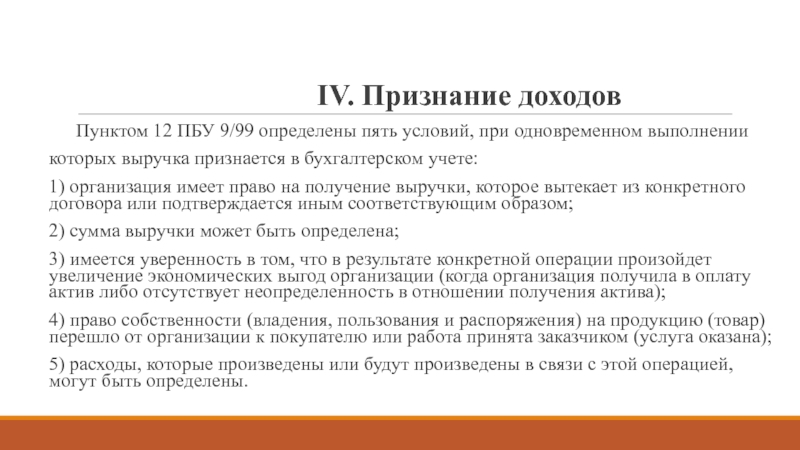 Пунктом 12 ПБУ 9/99 определены пять условий, при одновременном