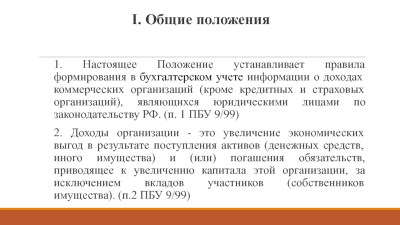 организаций), являющихся юридическими лицами по законодательству РФ. (п. 1 ПБУ 9/99)