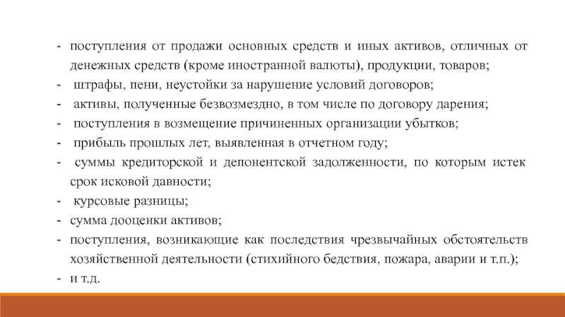 Слайд 15Прочие доходы организации за отчетный период, которые в соответствии с