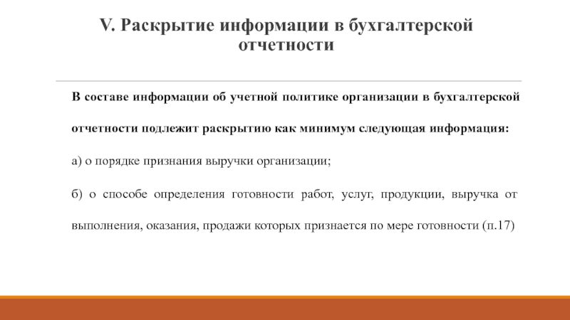 Слайд 12V. Раскрытие информации в бухгалтерской отчетности